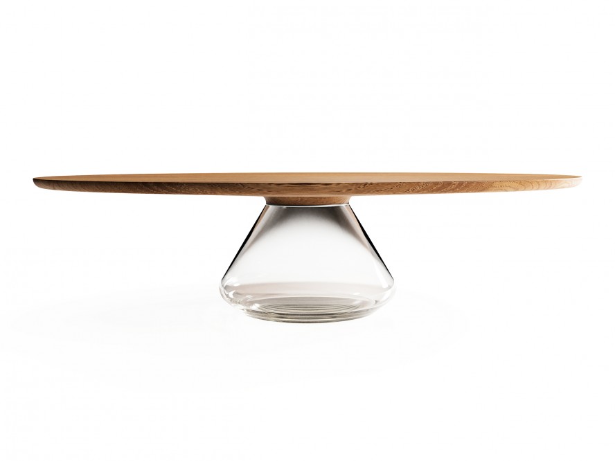 Solid and beautiful oaken top hold up by glamorous handmade glass base. After joining together, the exclusive and elegant coffee table came to light.