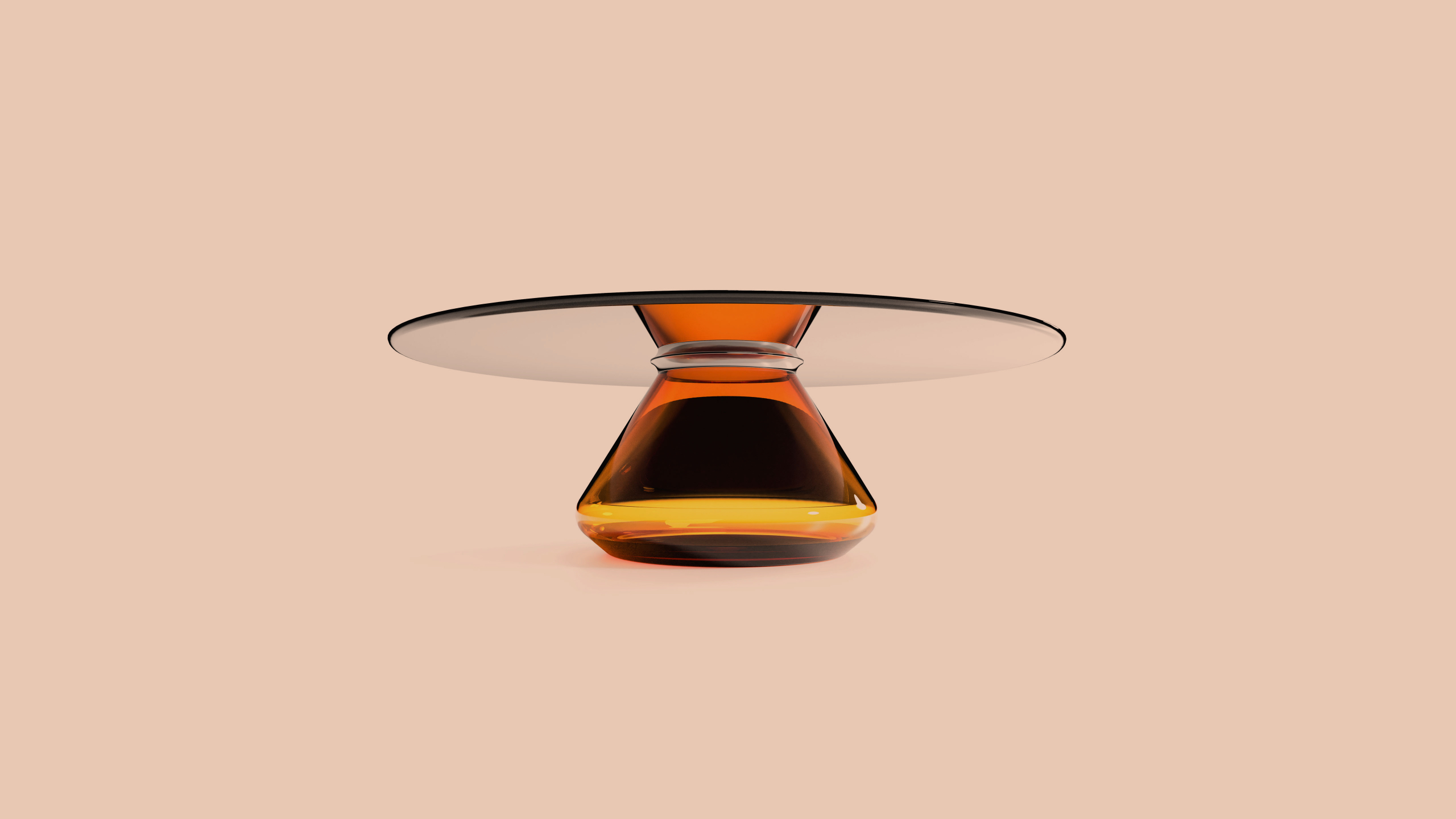 Beautiful smoky glass top hold up by glamorous handmade glass base. After joining together, the exclusive and elegant coffee table came to light.