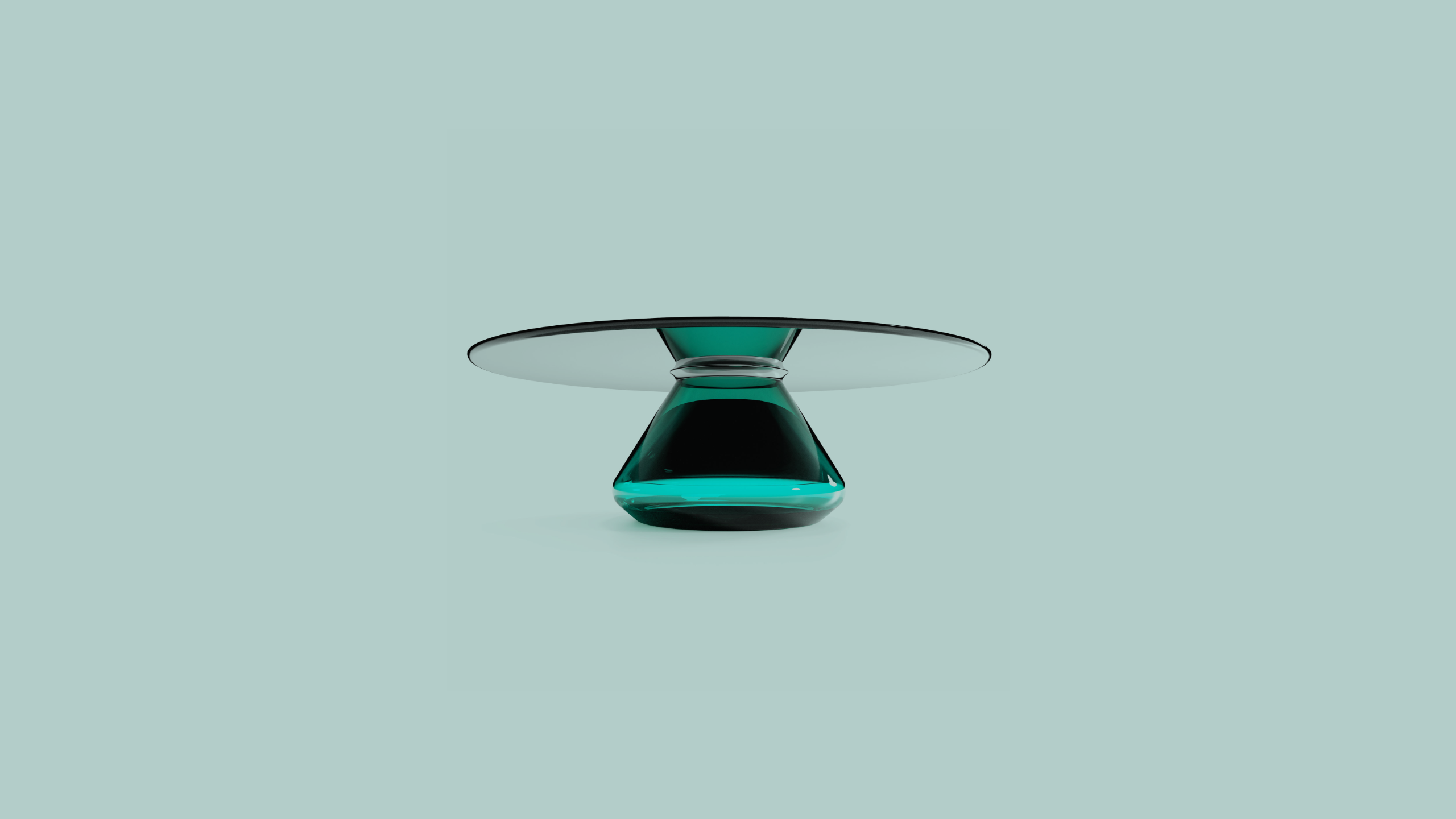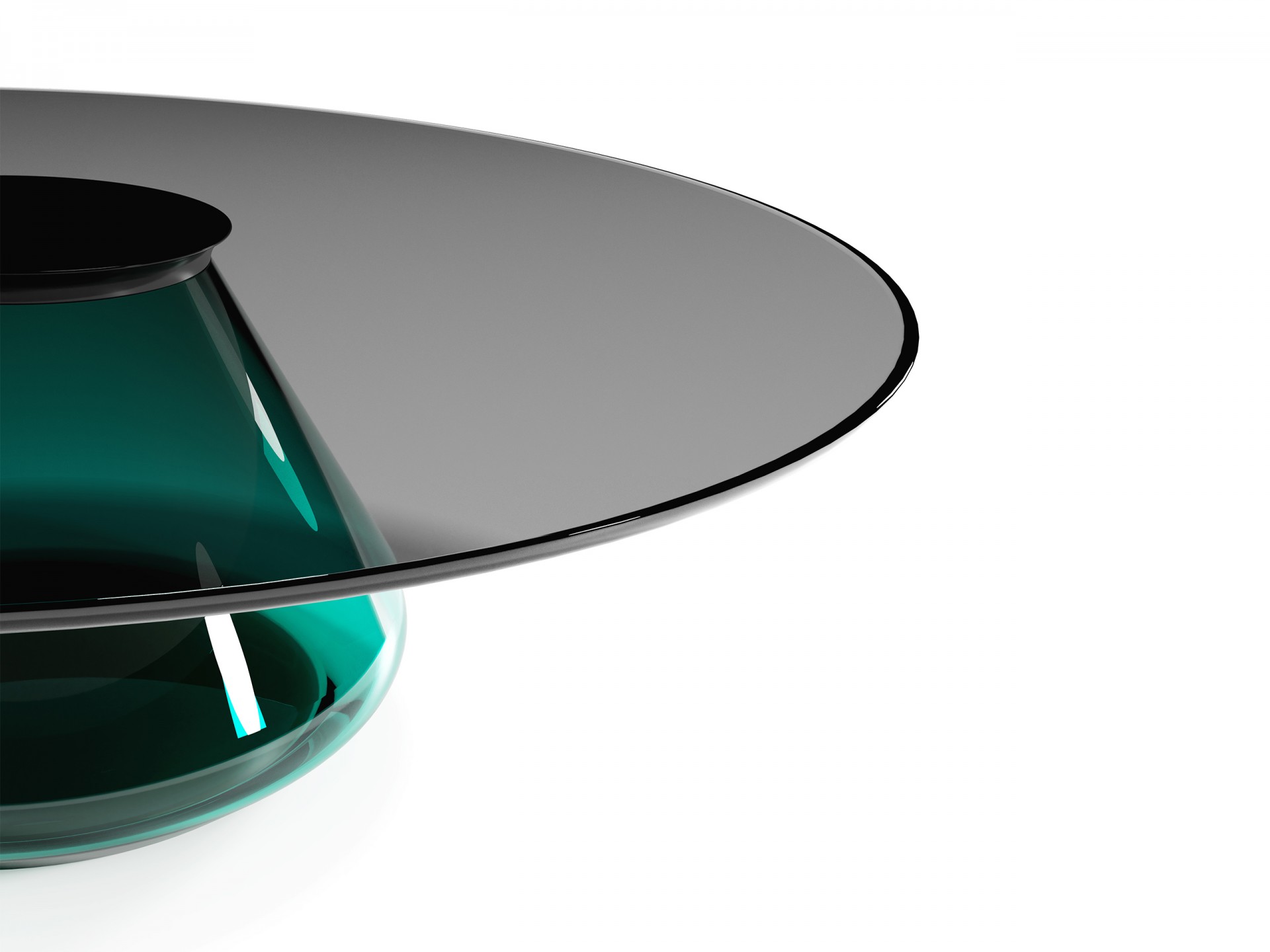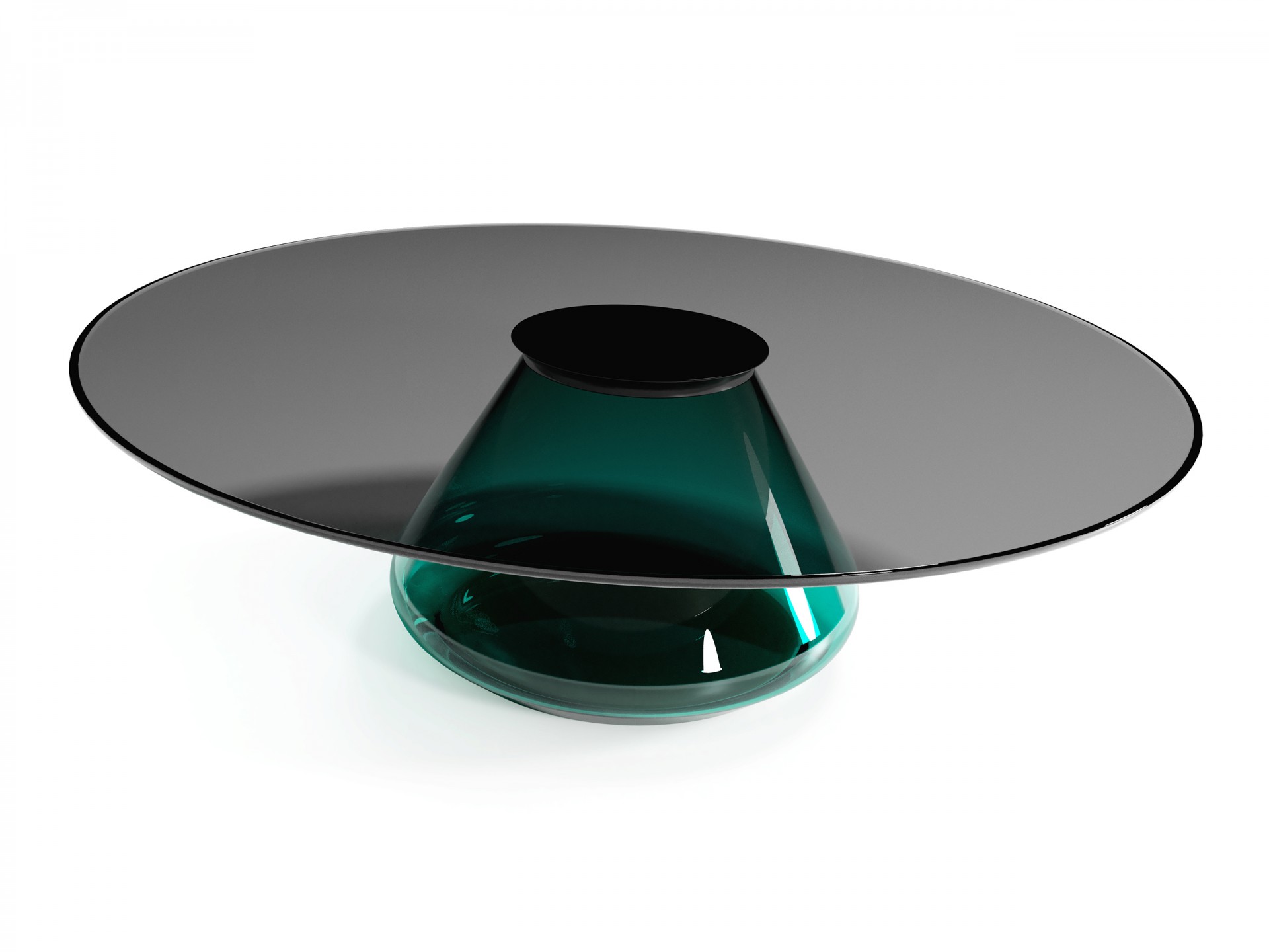 Contemporary Coffee Table ft. hand-blown glass base and tempered smoky glass top