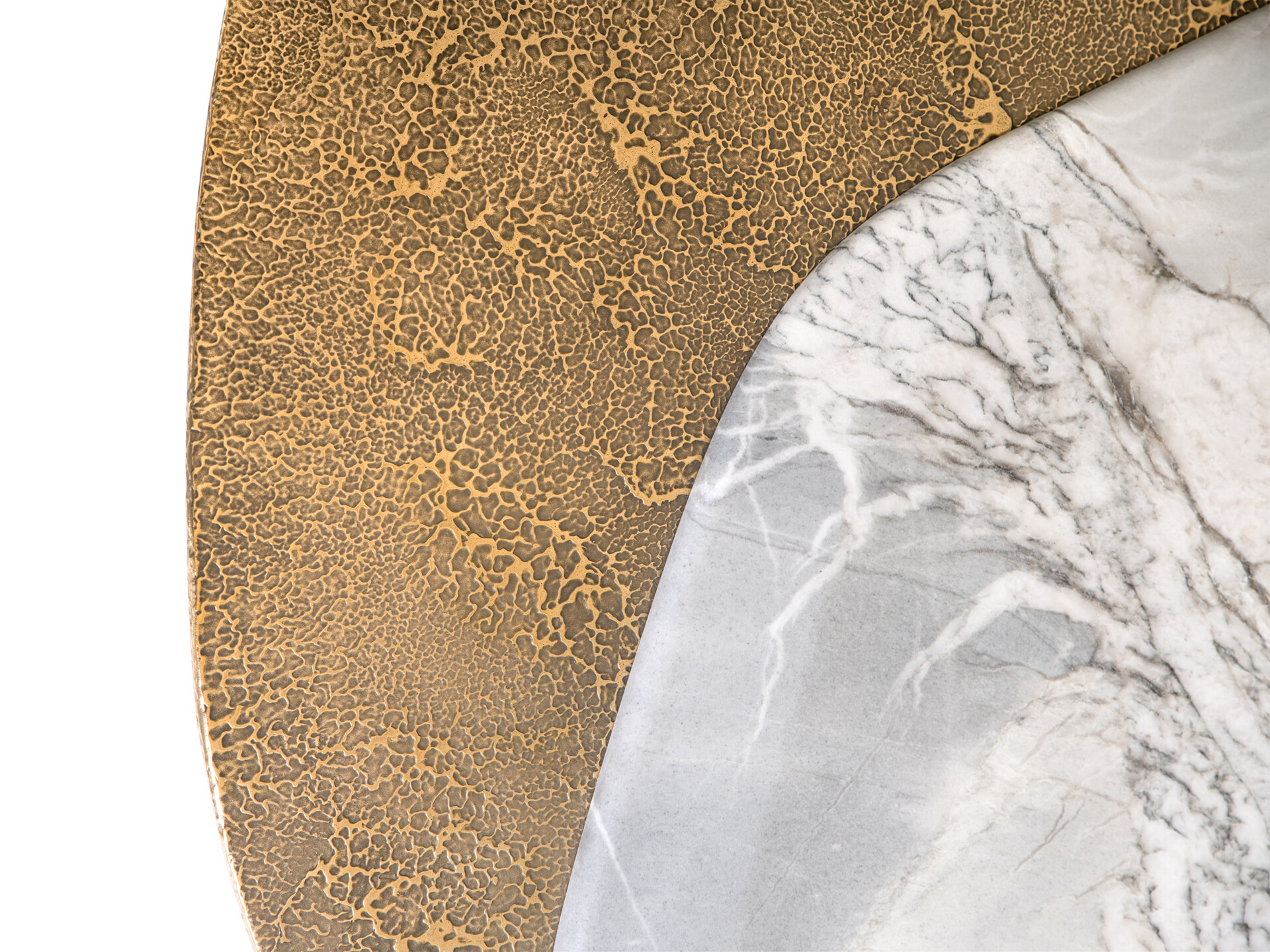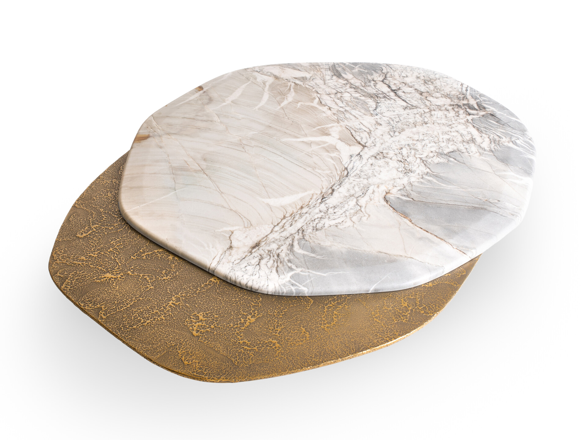 Following this idea, we have selected the unique volcanic material such as Brazilian Quartzite Venom. Satin finish highlights the irregular shapes, veins and the pits of the stone element designed by the Mother Nature.