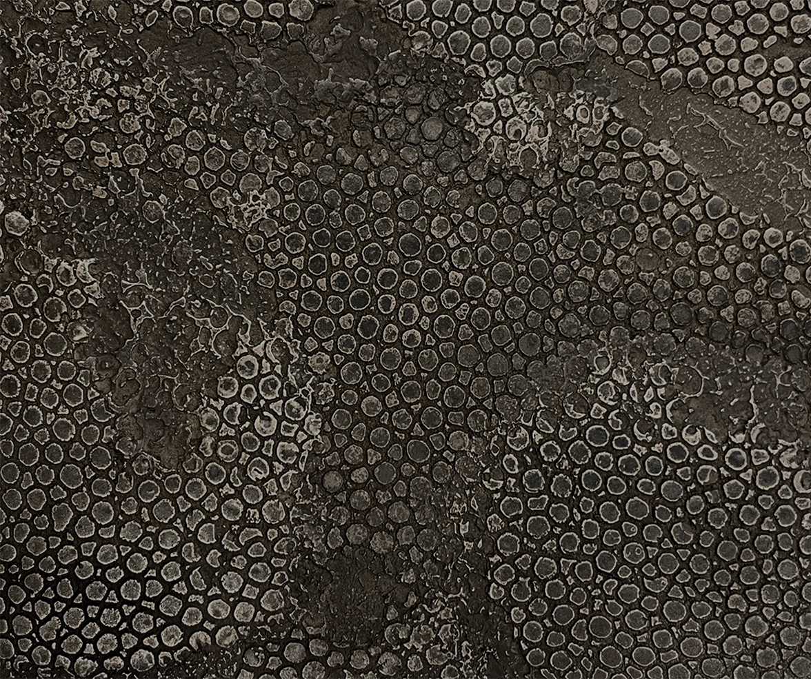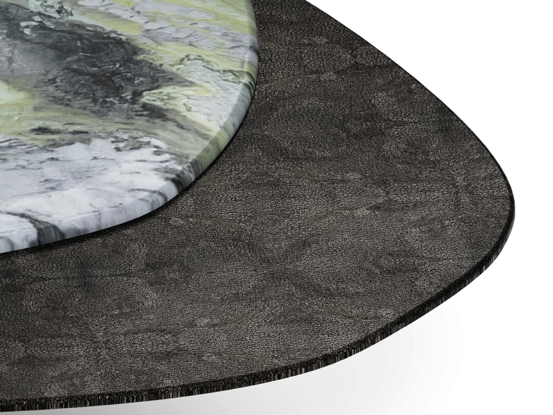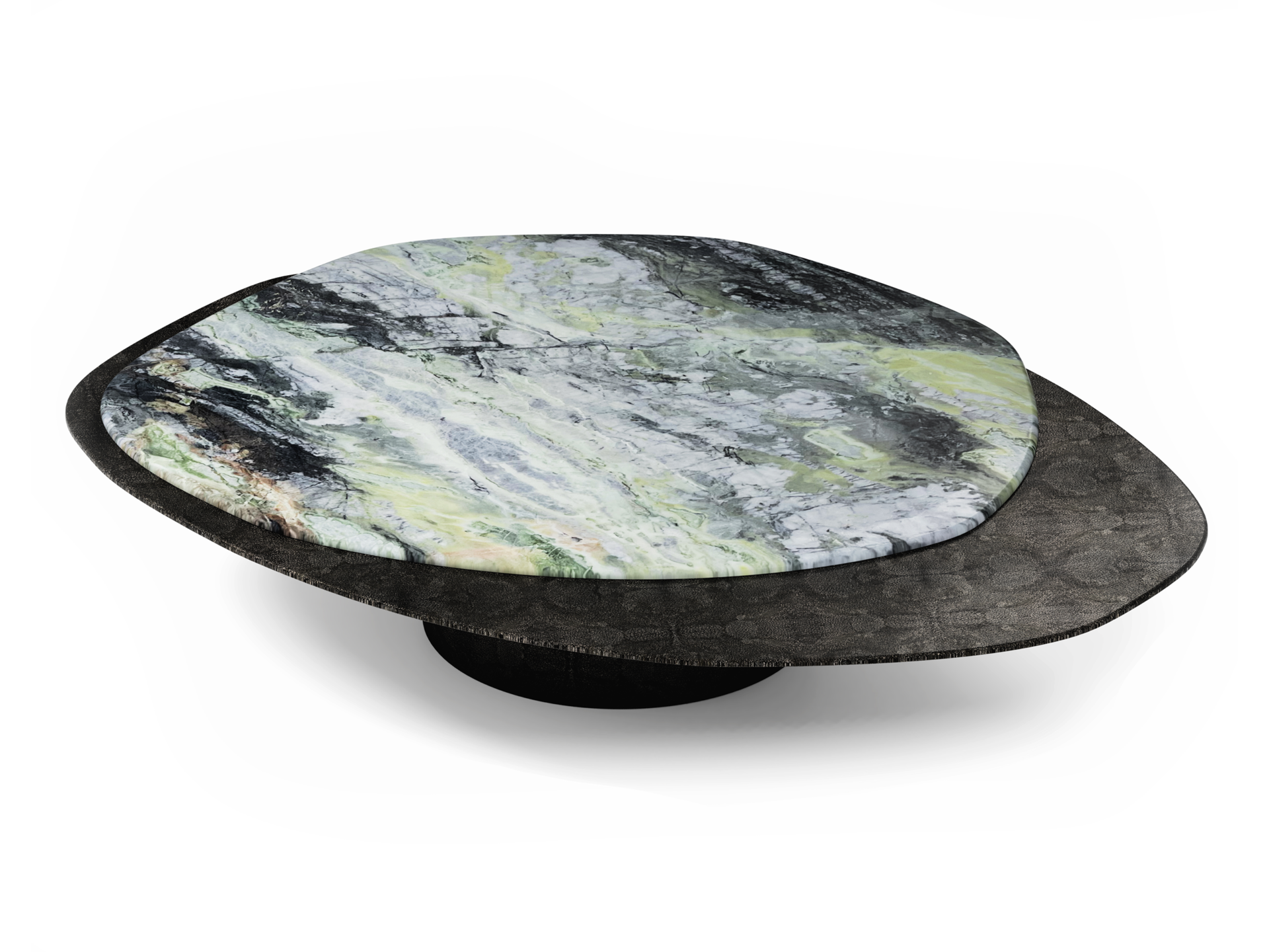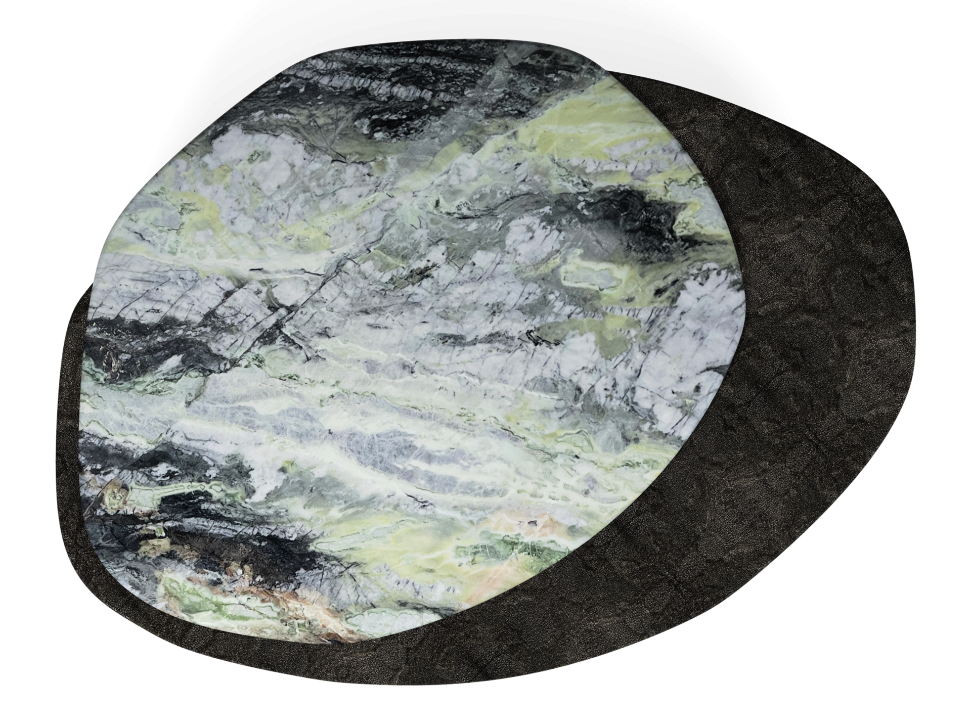 Satin finish highlights the irregular shapes, veins and the pits of the stone element designed by the Mother Nature.