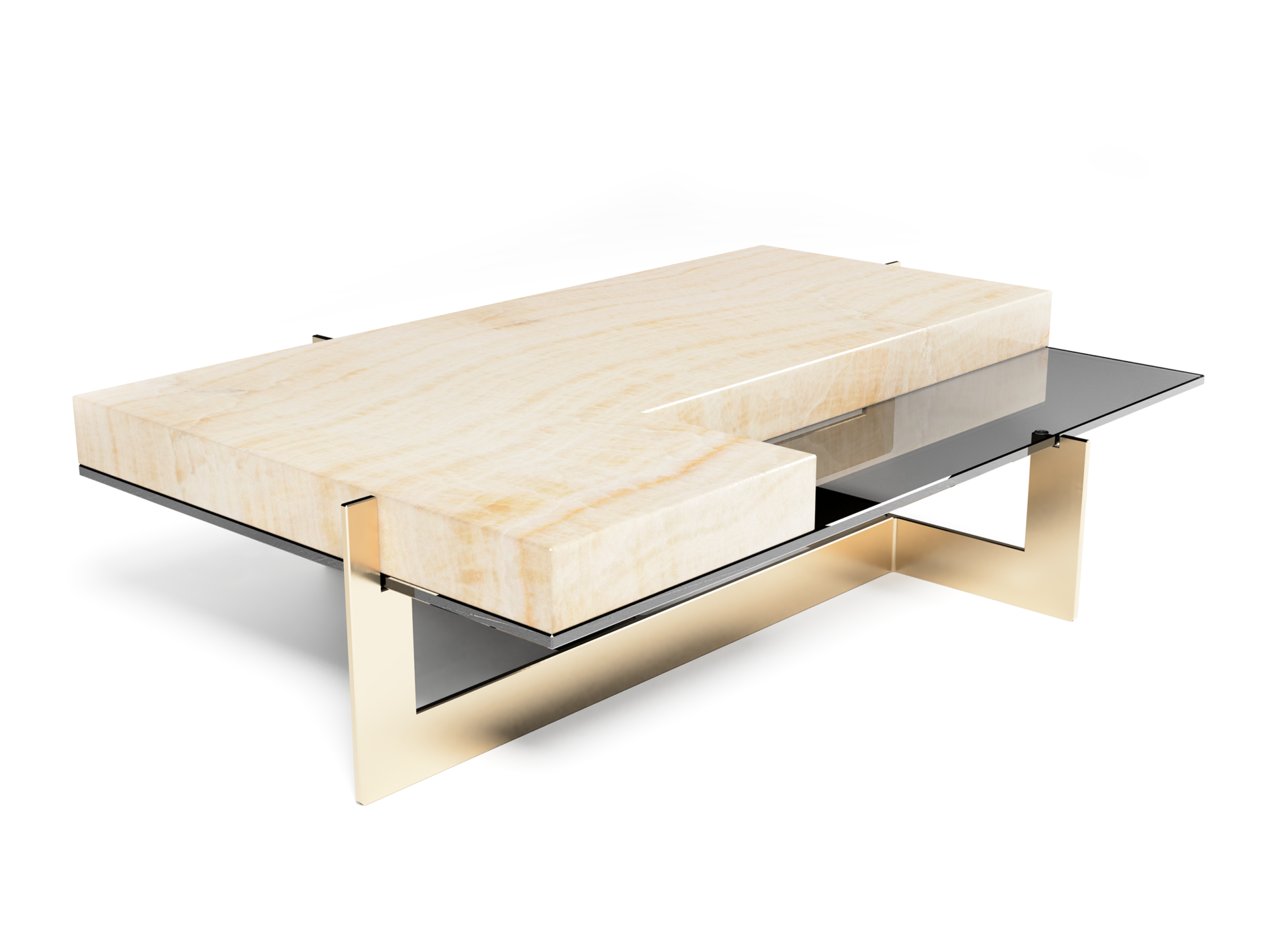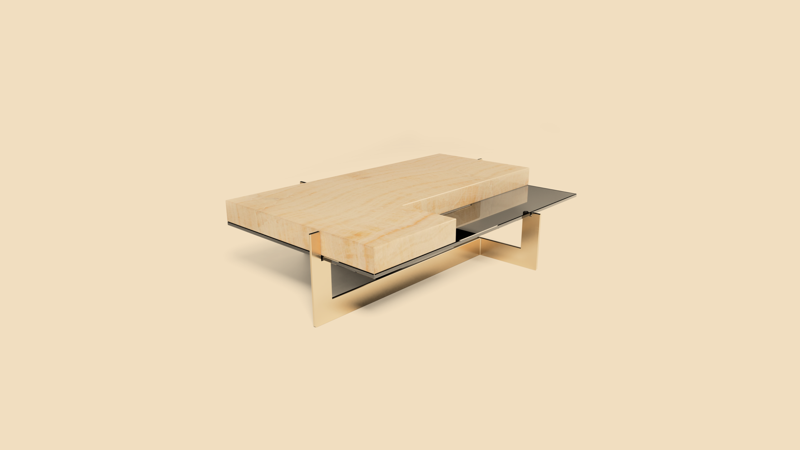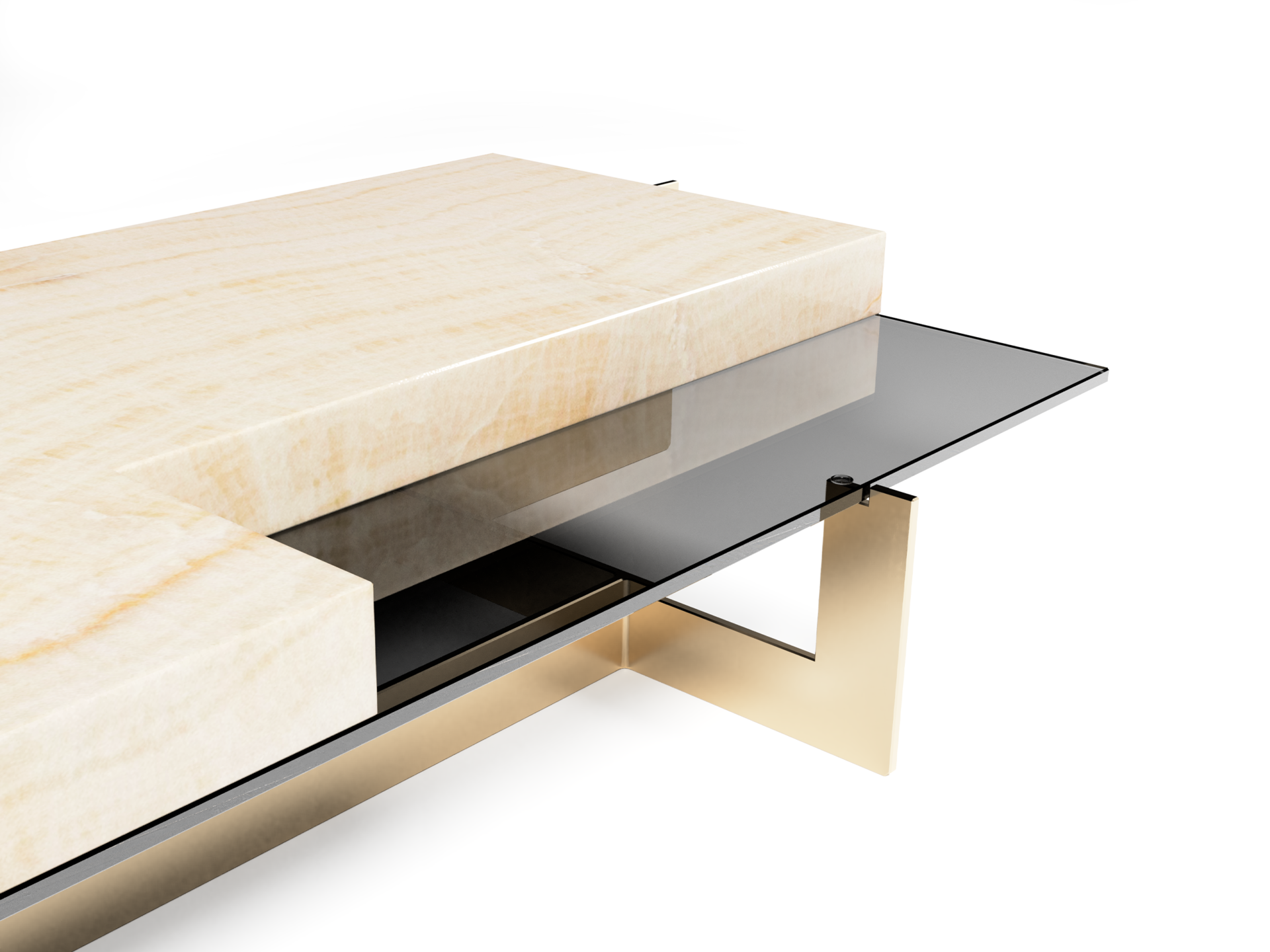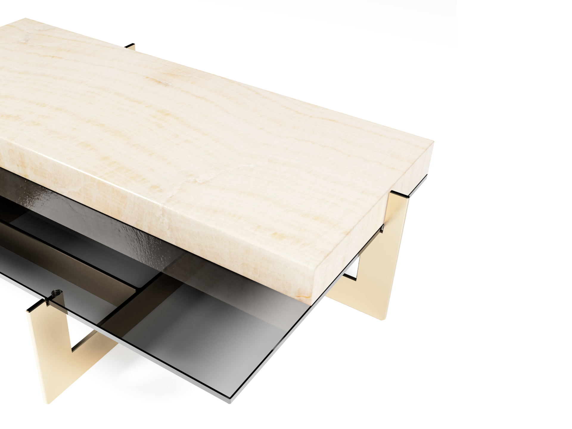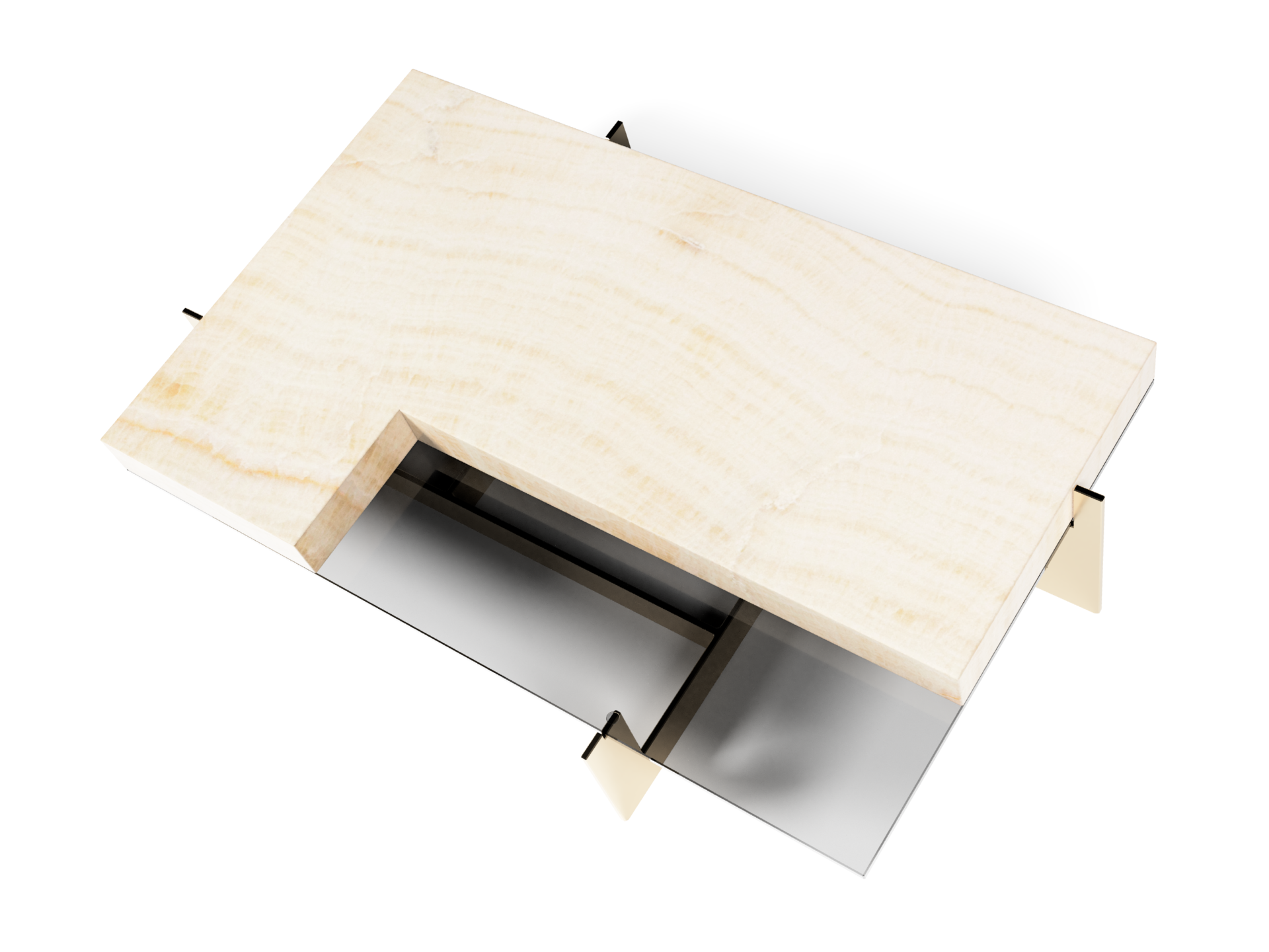 Cold smoky glass adds sense of vitality and freshness while underlying contrast combination of the materials.