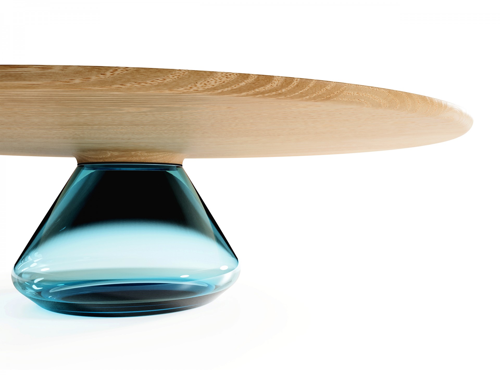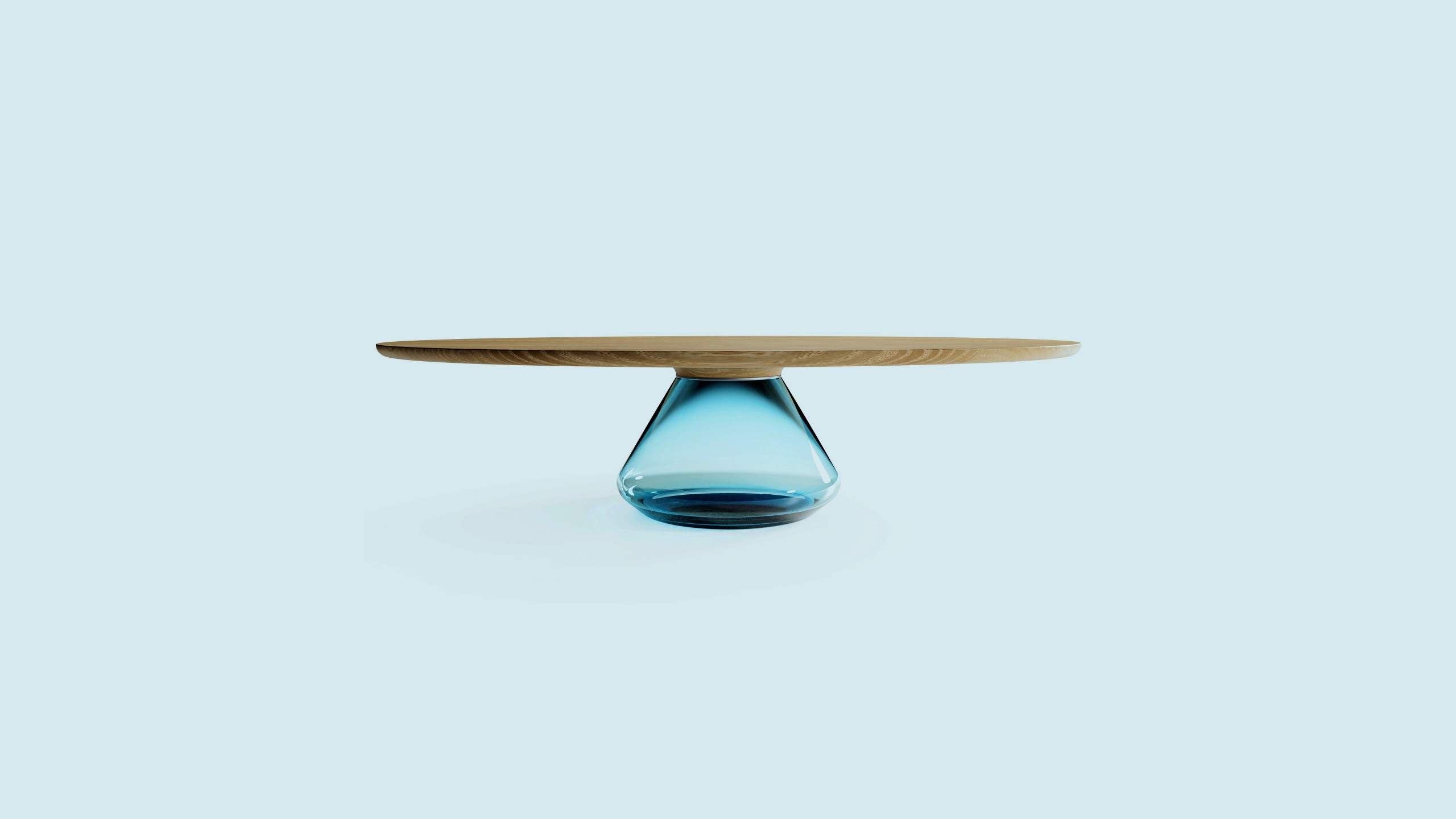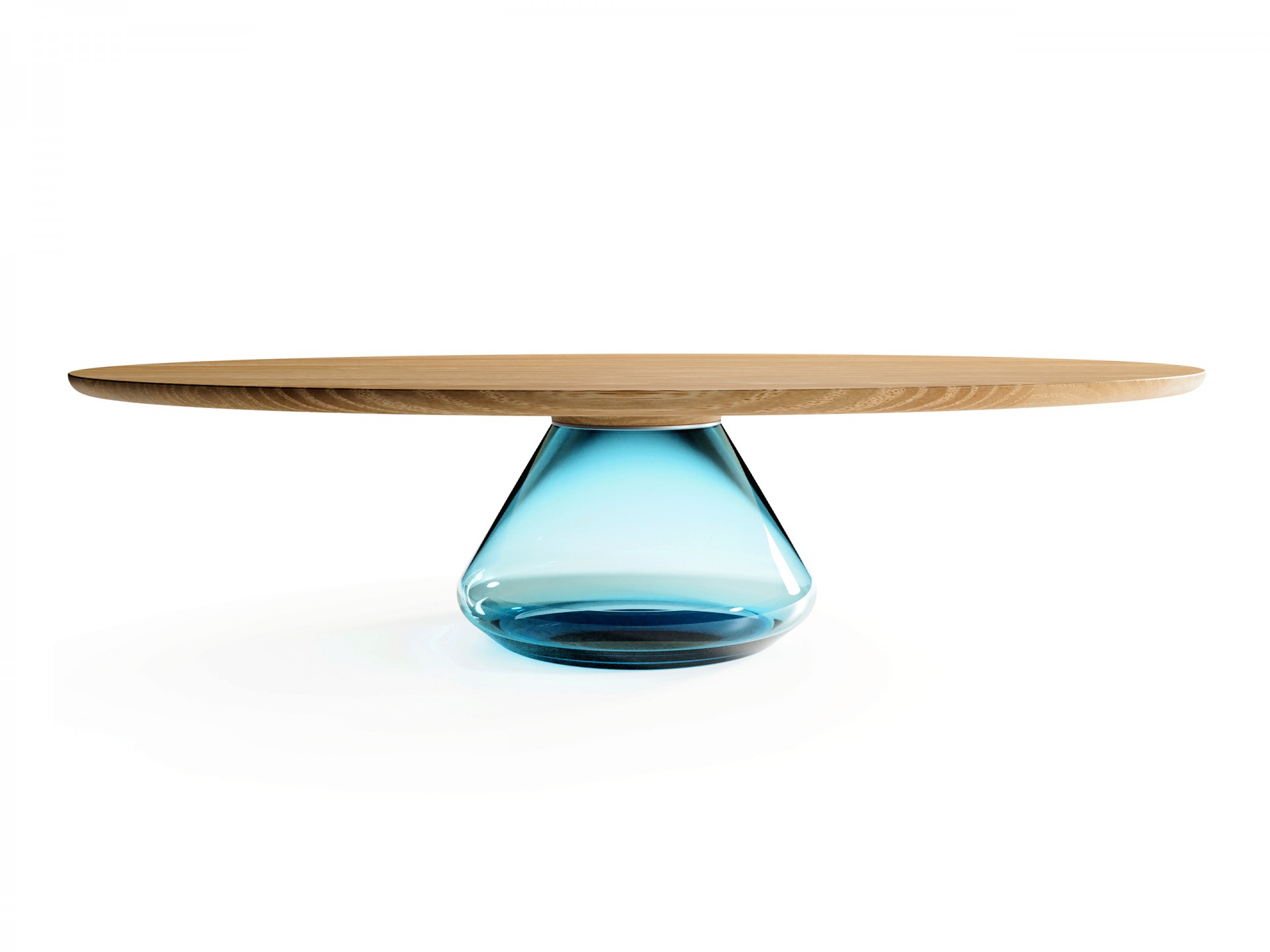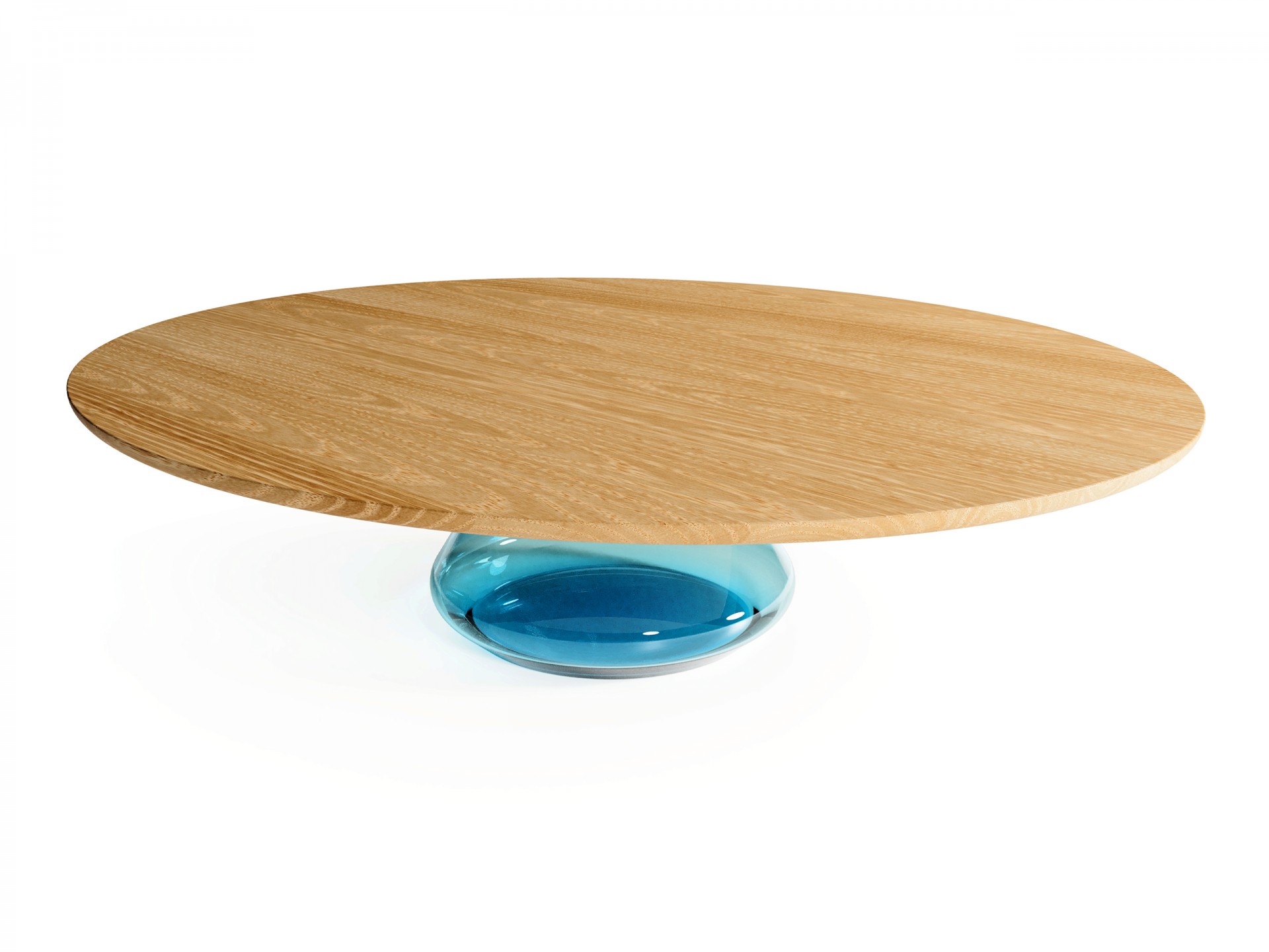 Solid and beautiful oaken top hold up by glamorous handmade glass base. After joining together, the exclusive and elegant coffee table came to light.