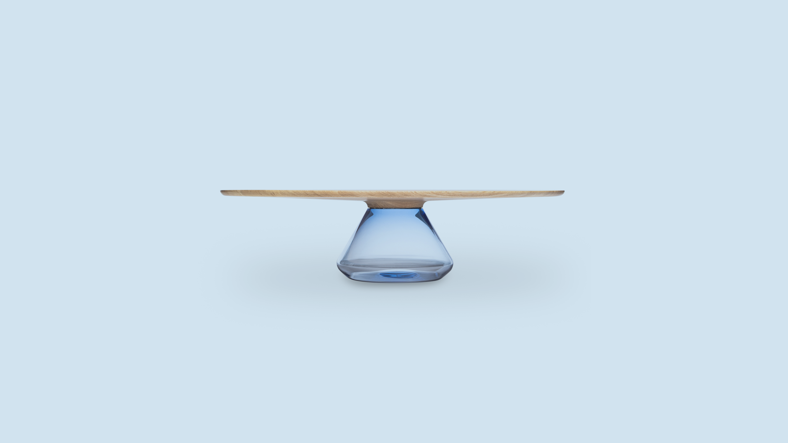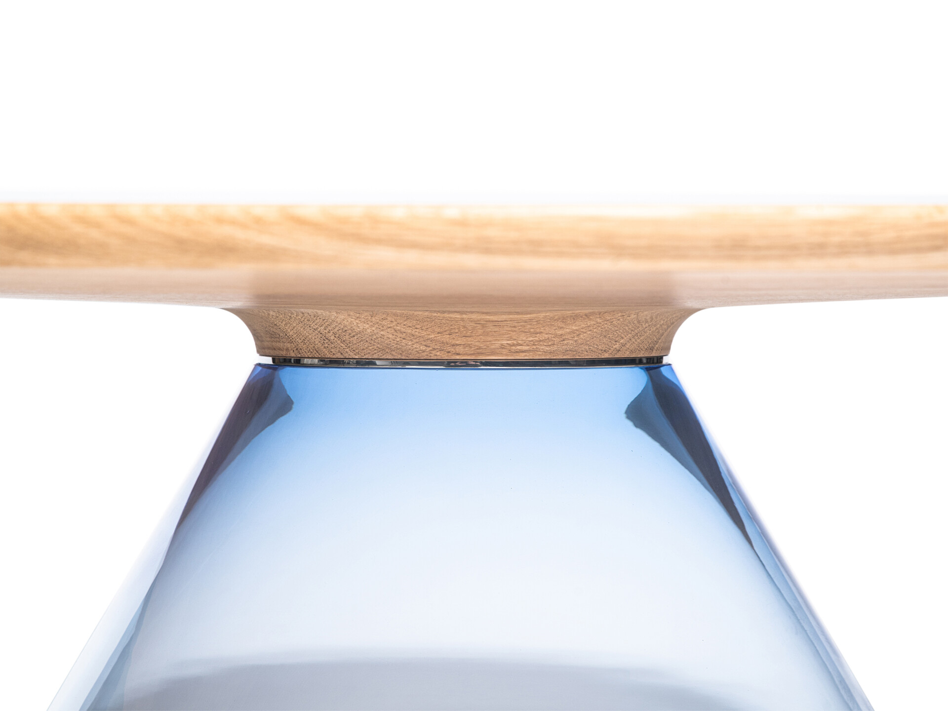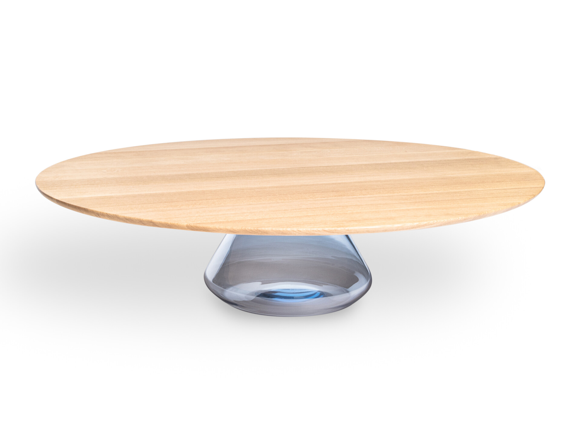 Solid and beautiful oaken top hold up by glamorous handmade glass base. After joining together, the exclusive and elegant coffee table came to light.